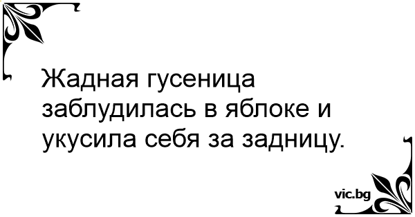 Жадная гусеница заблудилась в яблоке и укусила себя за задницу.