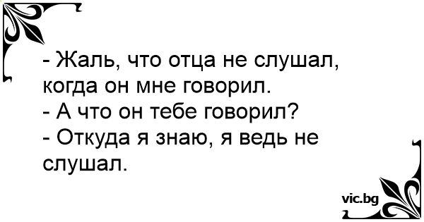 - Жалко, че не слушах баща ми като ми говореше. - Какво ти казваше? - От де да знам, не го слушах