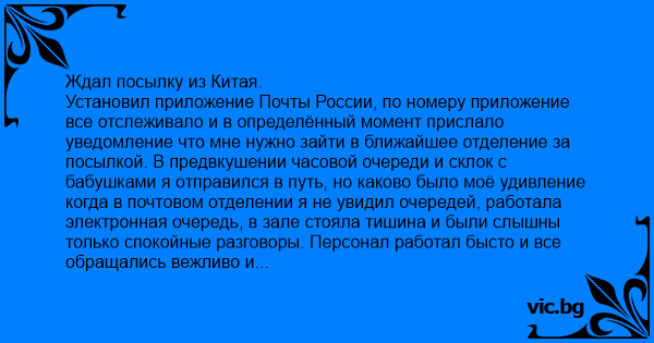 Установил приложение Почты России, по номеру приложение все отслеживало и в определённый момент прислало уведомление что мне нужно зайти в ближайшее отделение за посылкой. В предвкушении часовой очереди и склок с бабушками я отправился в путь, но каково было моё удивление когда в почтовом отделении я не увидил очередей, работала электронная очередь, в зале стояла тишина и были слышны только спокойные разговоры. Персонал работал бысто и все обращались вежливо и дружелюбно, а вместо традиционного часа потратил 10 минут. Я конечно слышал, что Почту России переделывают, но такими изменениями был приятно удивлён.