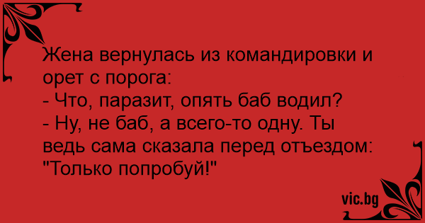 Жена вернулась из командировки и орет с порога: