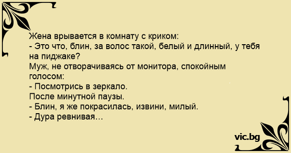Муж, не отворачиваясь от монитора, спокойным голосом: