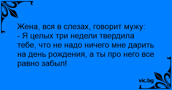 - Я целых три недели твердила тебе, что не надо ничего мне дарить на день рождения, а ты про него все равно забыл!