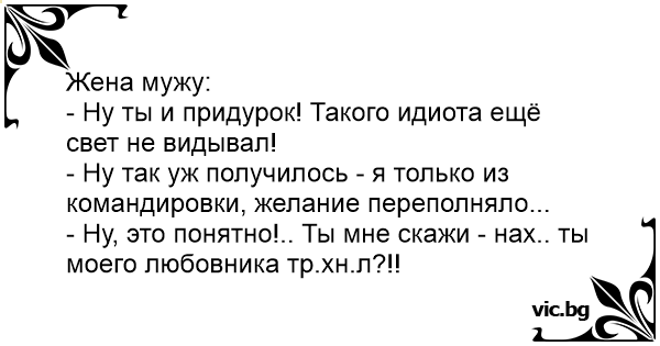 - Ну, это понятно!.. Ты мне скажи - нах.. ты моего любовника тр.хн.л?!!