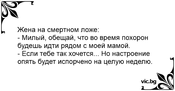 - Милый, обещай, что во время похорон будешь идти рядом с моей мамой.
