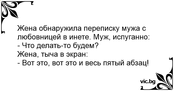 Жена обнаружила переписку мужа с любовницей в инете. Муж, испуганно: