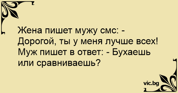 Муж пишет в ответ: - Бухаешь или сравниваешь?