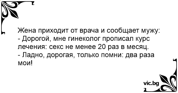 - Дорогой, мне гинеколог прописал курс лечения: cekc не менее 20 раз в месяц.