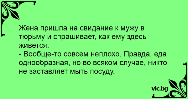 Жена пришла на свидание к мужу в тюрьму и спрашивает, как ему здесь живется.