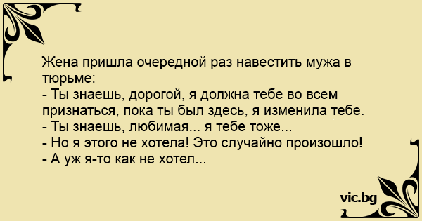 Жена пришла очередной раз навестить мужа в тюрьме: