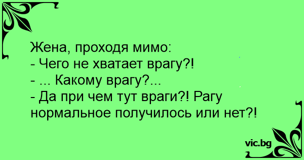 - Да при чем тут враги?! Рагу нормальное получилось или нет?!