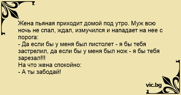 жена пьяная приходит домой...