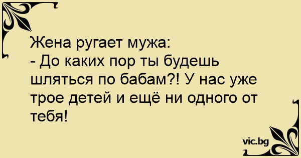 - До каких пор ты будешь шляться по бабам?! У нас уже трое детей и ещё ни одного от тебя!
