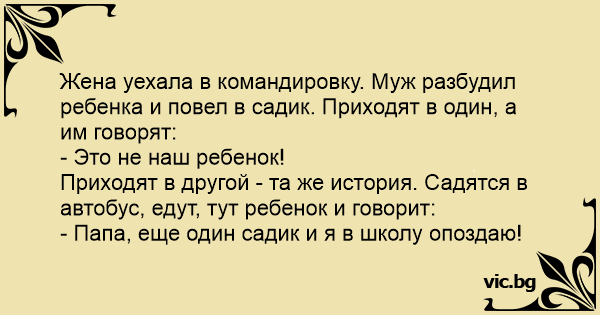 Съпругата заминава в командировка и се налага мъжът да заведе детето на градина.