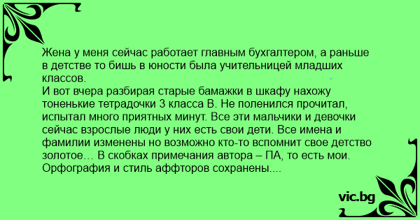 И вот вчера разбирая старые бамажки в шкафу нахожу тоненькие тетрадочки 3 класса В. Не поленился прочитал, испытал много приятных минут. Все эти мальчики и девочки сейчас взрослые люди у них есть свои дети. Все имена и фамилии изменены но возможно кто-то вспомнит свое детство золотое… В скобках примечания автора – ПА, то есть мои.