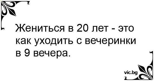 Жениться в 20 лет - это как уходить с вечеринки в 9 вечера.