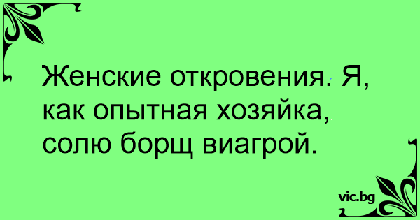 Женские откровения. Я, как опытная хозяйка, солю борщ виагрой.
