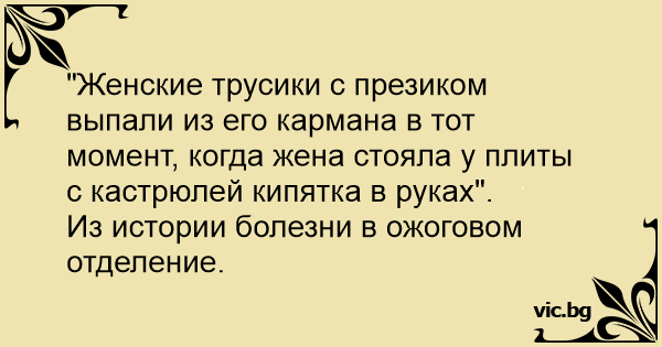 "Женские трусики с презиком выпали из его кармана в тот момент, когда жена стояла у плиты с кастрюлей кипятка в руках".
