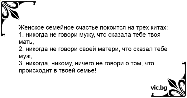 2. никогда не говори своей матери, что сказал тебе муж,