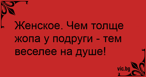 Женское. Чем толще жoпа у подруги - тем веселее на душе!