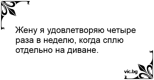 Жену я удовлетворяю четыре раза в неделю, когда сплю отдельно на диване.