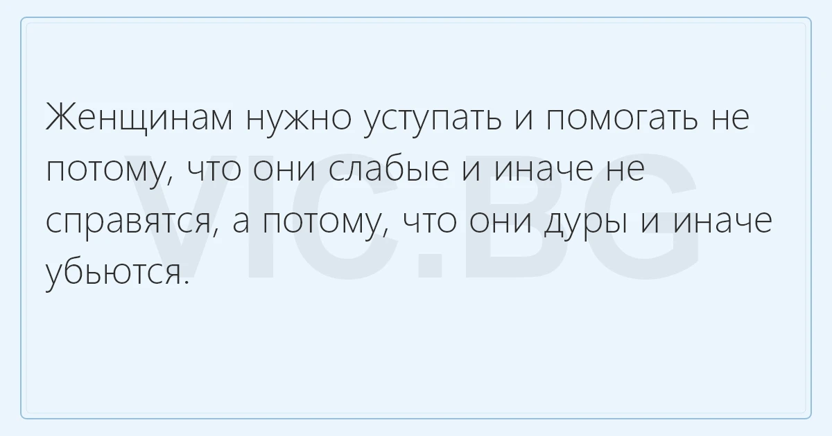 Женщинам нужно уступать и помогать не потому, что они слабые и иначе не справятся, а потому, что они дуры и иначе убьются.