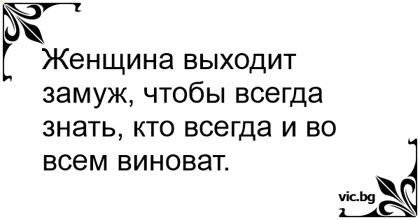 Женщина выходит замуж, чтобы всегда знать, кто всегда и во всем виноват.