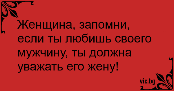 Женщина, запомни, если ты любишь своего мужчину, ты должна уважать его жену!