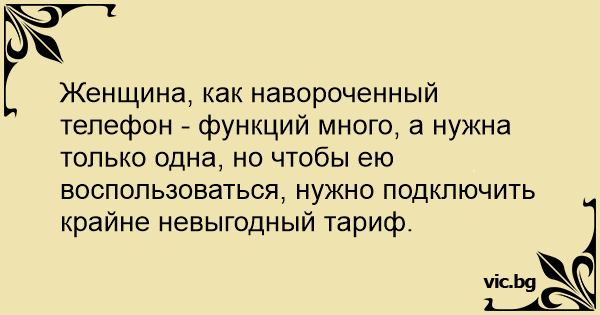Женщина, как навороченный телефон - функций много, а нужна только одна, но чтобы ею воспользоваться, нужно подключить крайне невыгодный тариф.