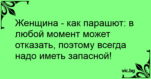 Женщина - как парашют: в любой момент может отказать, поэтому всегда надо иметь запасной!