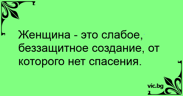 Женщина - это слабое, беззащитное создание, от которого нет спасения.