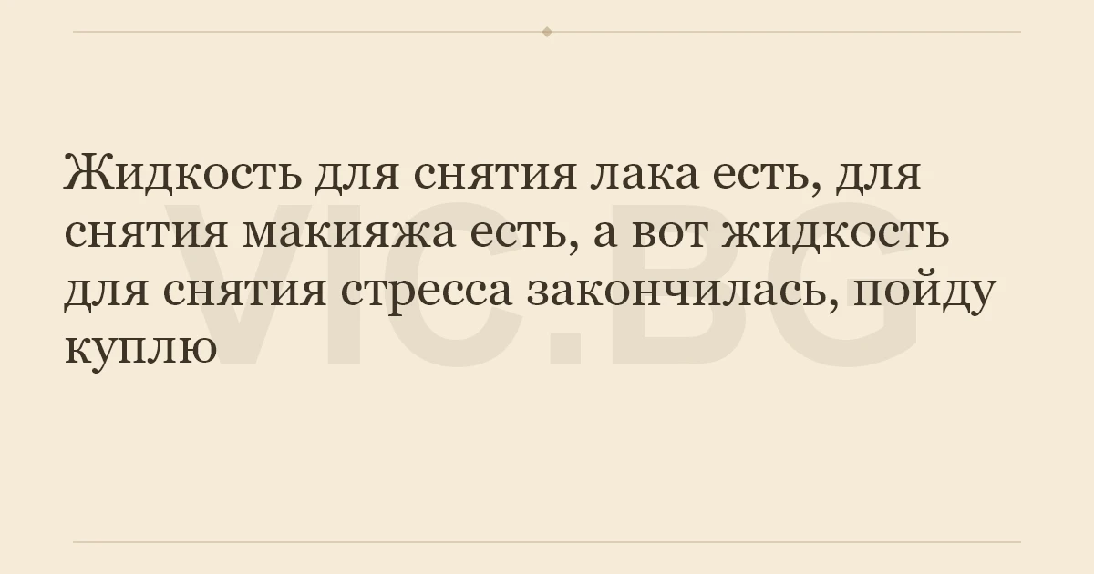 Жидкость для снятия лака есть, для снятия макияжа есть, а вот жидкость для снятия стресса закончилась, пойду куплю