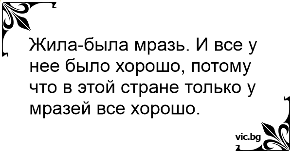 Жила-была мразь. И все у нее было хорошо, потому что в этой стране только у мразей все хорошо.