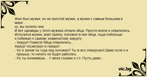 И вот однажды у этого мужика отпали яйца. Пpосто взяли и отвалились.