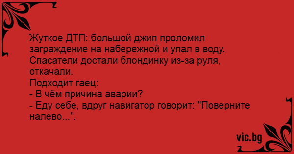 - Еду себе, вдруг навигатор говорит: "Поверните налево...".