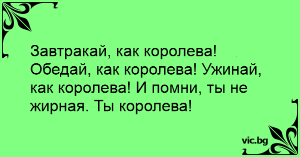 Завтракай, как королева! Обедай, как королева! Ужинай, как королева! И помни, ты не жирная. Ты королева!