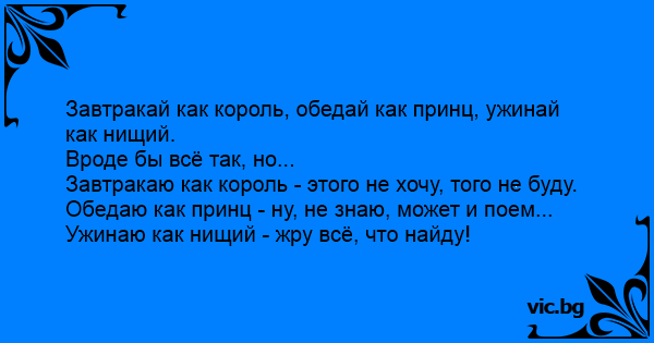 Завтракай как король, обедай как принц, ужинай как нищий.