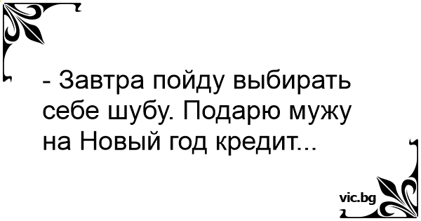- Завтра пойду выбирать себе шубу. Подарю мужу на Новый год кредит...