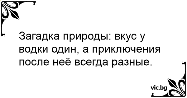 Загадка природы: вкус у водки один, а приключения после неё всегда разные.
