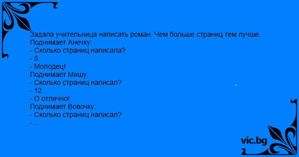 Задала учительница написать роман. Чем больше страниц тем лучше.