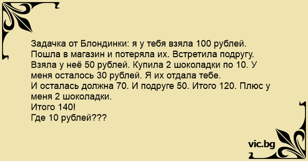 Задачка от Блондинки: я у тебя взяла 100 рублей.