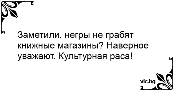 Заметили, негры не грабят книжные магазины? Наверное уважают. Культурная раса!