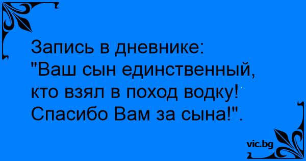 "Ваш сын единственный, кто взял в поход водку! Спасибо Вам за сына!".