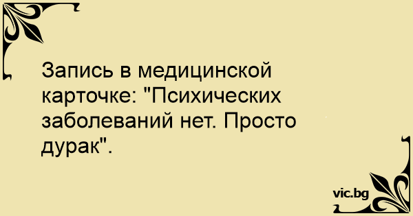 Запись в медицинской каpточке: "Психических заболеваний нет. Пpосто дуpак".