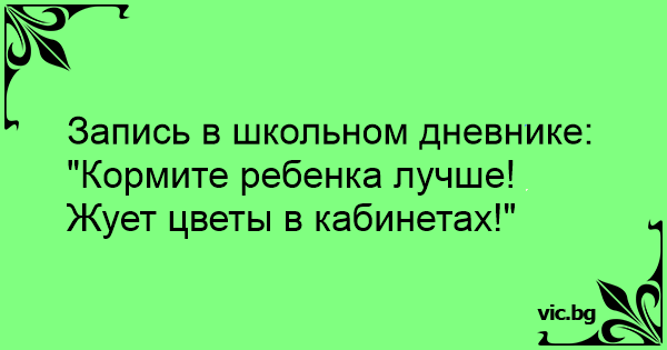 Запись в школьном дневнике: "Кормите ребенка лучше! Жует цветы в кабинетах!"