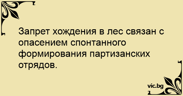 Запрет хождения в лес связан с опасением спонтанного формирования партизанских отрядов.