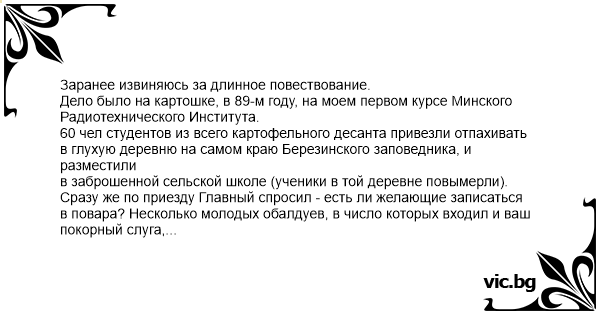 Дело было на картошке, в 89-м году, на моем первом курсе Минского
