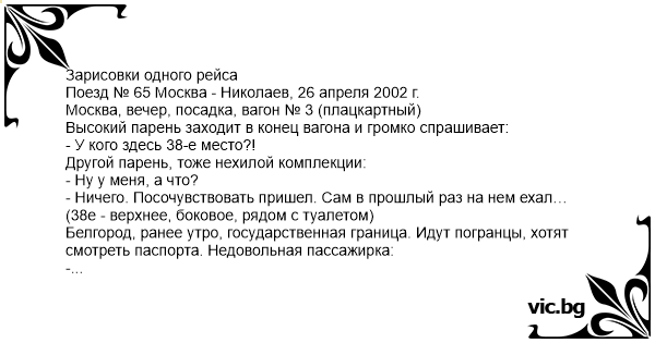 Зарисовки одного рейса Поезд № 65 Москва - Николаев, 26 апреля 2002 г.
