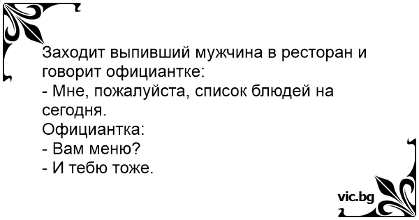 Заходит выпивший мужчина в ресторан и говорит официантке: