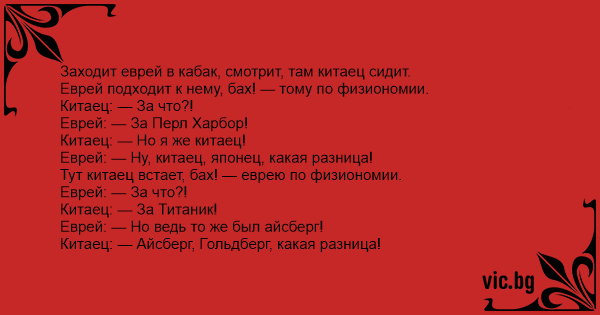 Тут китаец встает, бaх! — еврею по физиономии.