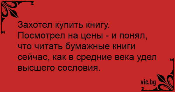 Захотел купить книгу. Посмотрел на цены - и понял, что читать бумажные книги сейчас, как в средние века удел высшего сословия.